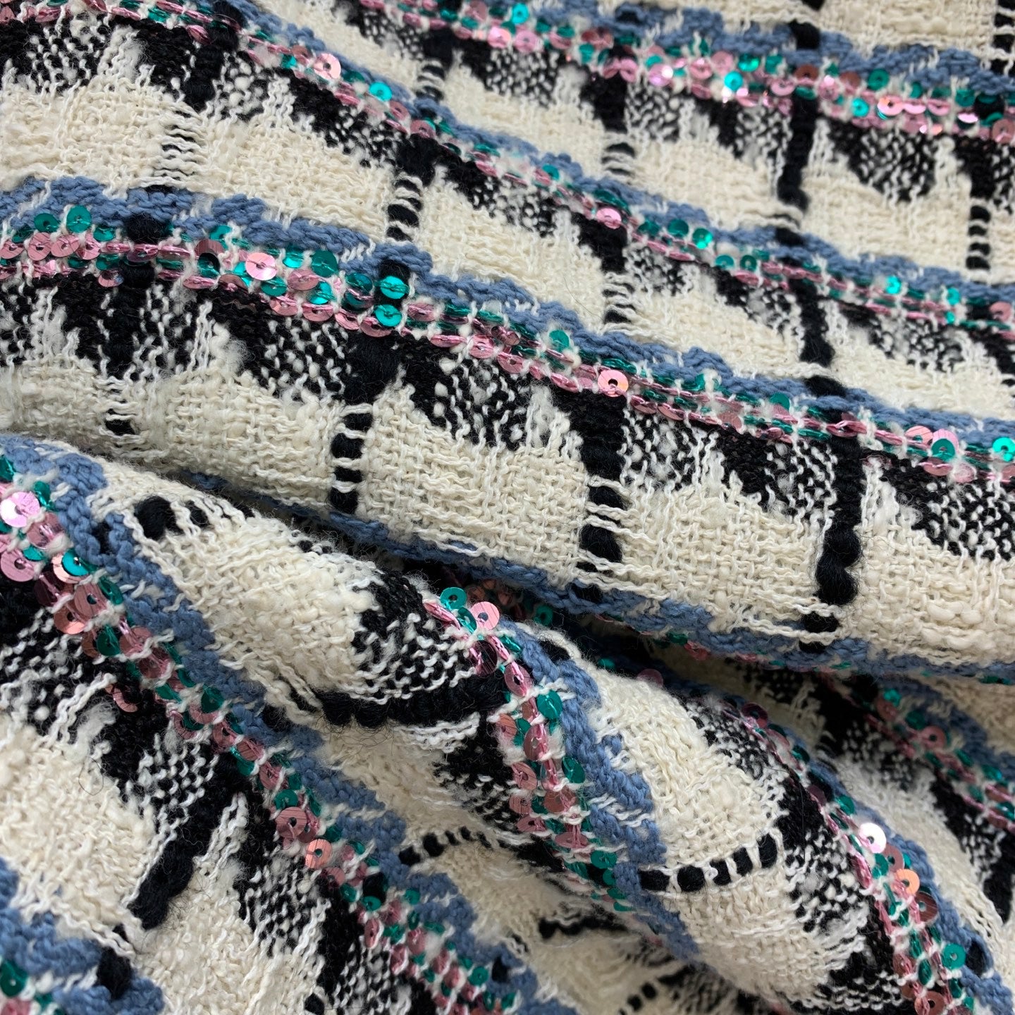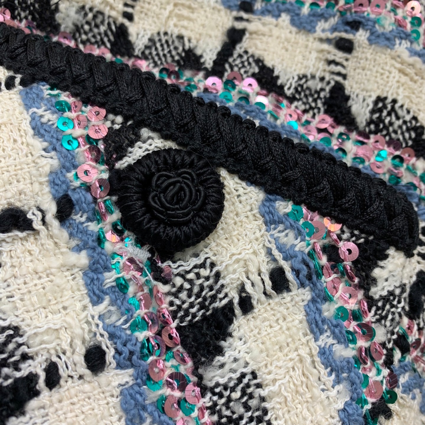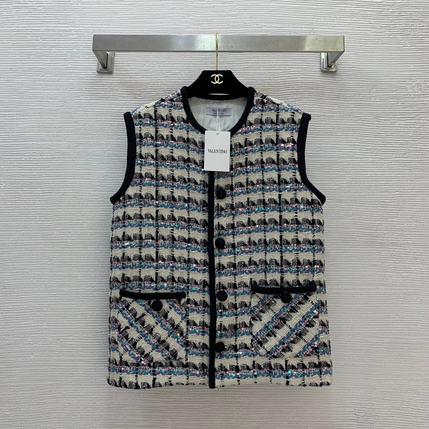 Customized colorful sequin blended tweed weave, high-grade dark jacquard lining, exquisite flower buttons, twisted contrasting hems, loose and fashionable sleeveless jacket top
